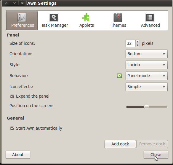 Hopefully more theme sites will pop up for awn. Open a terminal window by hitting alt f2 and typing gnome terminal without quotes. There is now a way to easily make a curved dock. A vant window navigator awn or awn is a fully customisable dock like bar for the gnome desktop environment this quick blog post explains how to install and use avant window navigator awn under debian linux 6 x.