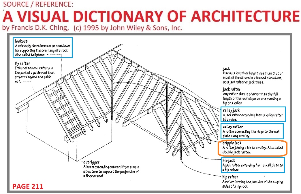 Noun a rafter having less than the full length of the roof slope as one meeting a hip or a valley most material 2005 1997 1991 by penguin random house llc. One of the shorter rafters used in a hip or valley roof. Aluminum coatings do not perform well on roofs that pond water. Roof framing involves a lexicon all its own.