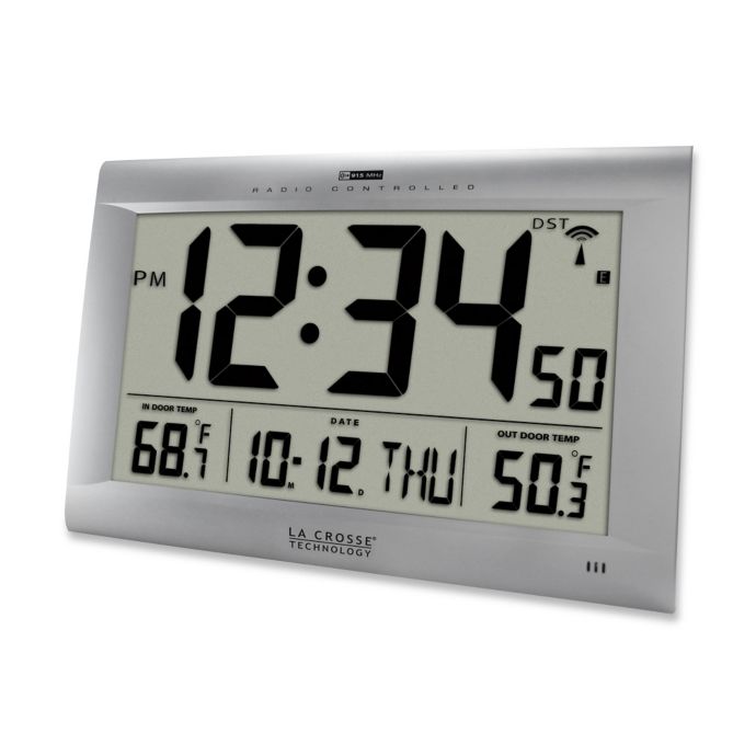 The large digits make this clock extremely easy to read even at a distance. Wallarge digital wall clock autoset atomic clock with temperature and date battery operated alarm clock large digital display easy to read day of the week. Digital atomic faux wood sided wall clock with temperature and indoor humidity.
